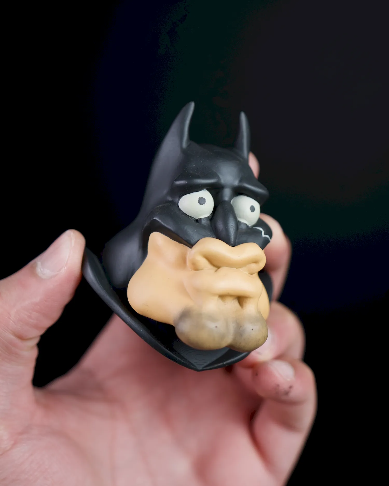 A hilarious parody take on the Dark Knight, sculpted with exaggerated features in a quirky style. A fun collectible magnet for comic fans and parody lovers.