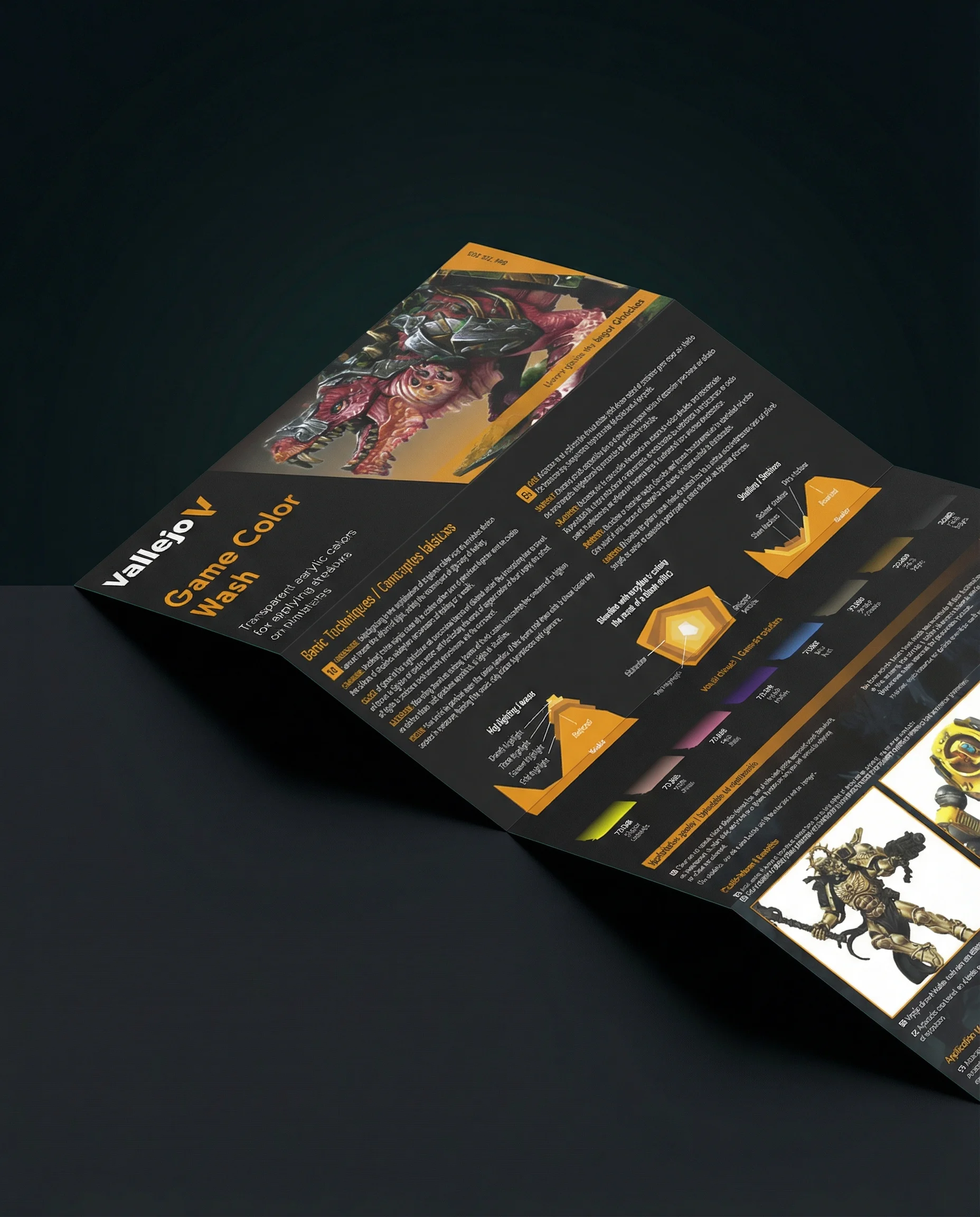Selection of washes designed to bring out the finer details of your miniatures. From deep shadows to luminous glows, each wash has been precisely formulated to enhance the depth and texture of your models, creating stunning visual effects with ease and precision. With a smooth and very fluid consistency, they glide effortlessly over the surfaces of your miniatures. Includes a detailed painting guide.