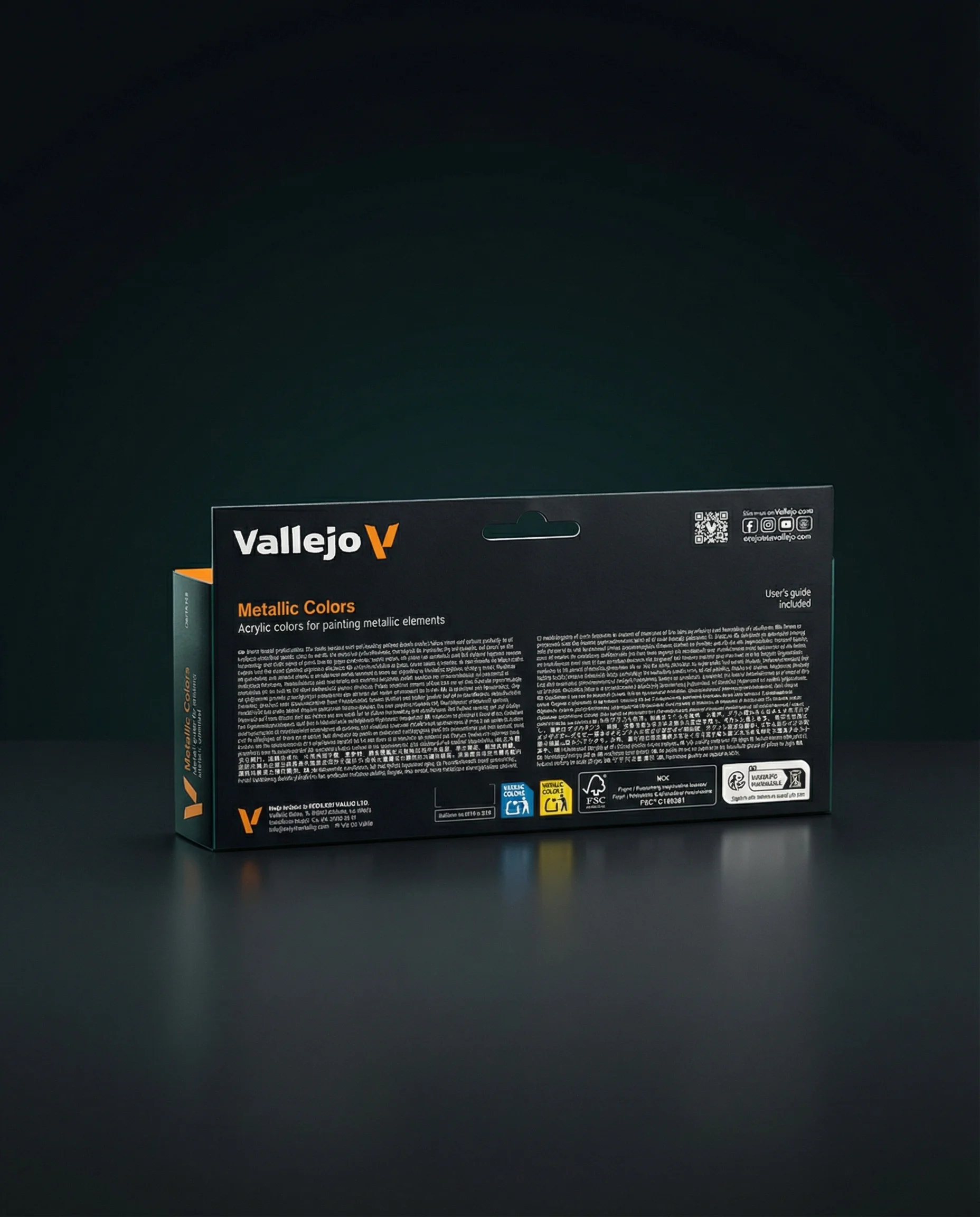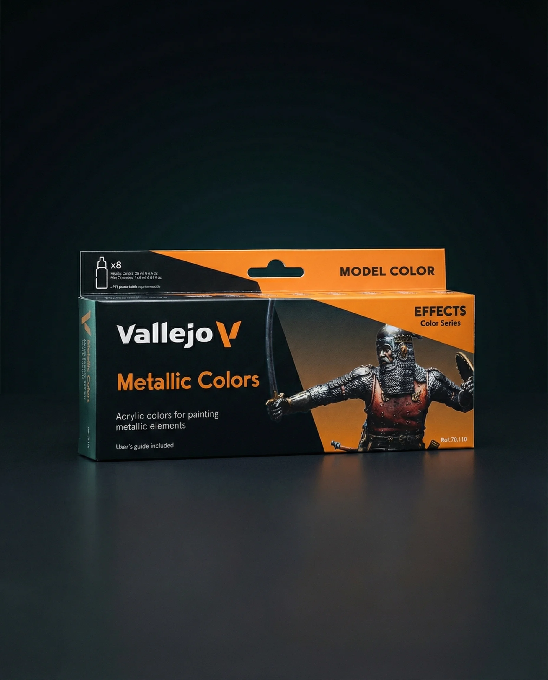Successfully painting metallic surfaces depends largely on choosing the right colors for each situation. In real life, metal has infinite shades and hues, so the right approach is to study the effect you want to portray, and select a color palette that will allow you to achieve it. In this set, we have included a selection of colors that will give you many options for painting chain mail, swords, firearms, or any other metallic element in your miniatures. Includes a detailed painting guide.