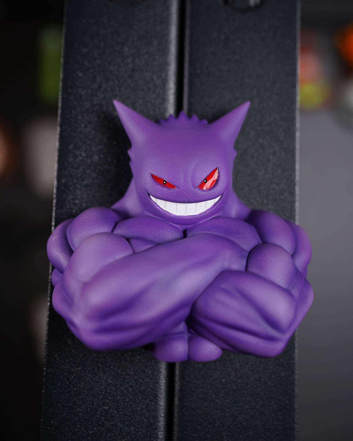 Muscular Gengar with a mischievous grin, sculpted in bold detail as a unique Pokémon magnet. A striking collectible for fans of the iconic Ghost-type.