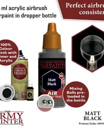 All Warpaints Air are pre-mixed and airbrush-ready right out of the bottle and made from ultra-filtered vibrant pigment. The Warpaints Air range has been developed in a unique and innovative Triad System – each matching Warpaints Acrylics colour has a corresponding Base and Highlight colour. This makes highlighting and zenithal shading a breeze and army painting even faster and more cohesive. To make things easier Warpaints Air comes pre-loaded with two steel Mixing Balls.