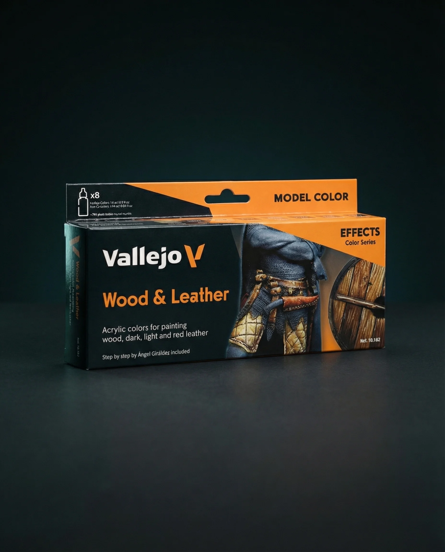 An 8-color paint set that allows you to explore a wide range of shades and effects on wood and leather elements. From the warm tones of mahogany to the deep browns of aged leather, each color has been carefully selected to give you maximum flexibility and versatility, allowing you to explore new techniques and effects to achieve amazing results on any project. Includes detailed step by step painting guide by Angel Giráldez.